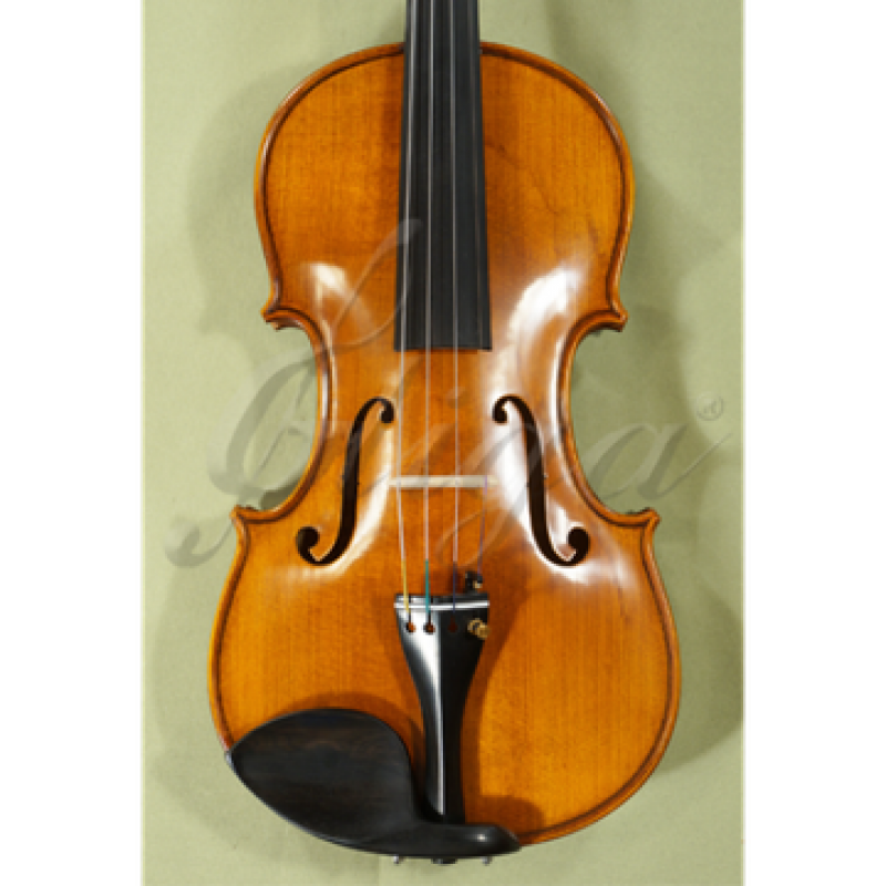Violino com tampo, braço e aros em  Arce raiado, tampo de abeto acusticamente seleccionado, secagem natural, construído e envernizado à mão, acabamento antigo na Roménia. Disponível entre 1/2