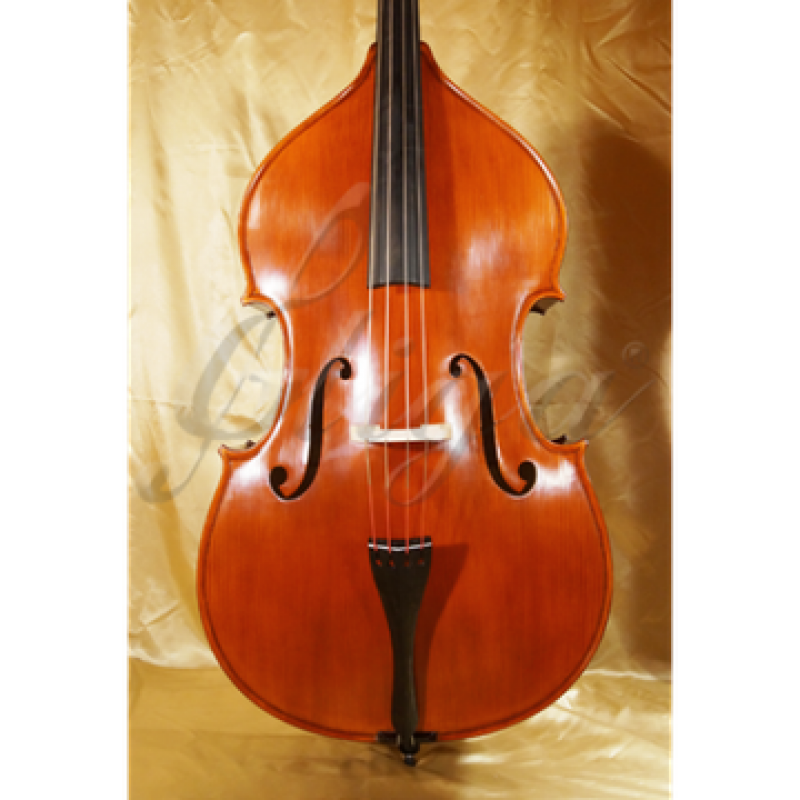 Contrabaixo em madeira laminada, construído e envernizado manualmente, fabrico Romeno. Só instrumento (não inclui arco nem saco/estojo).