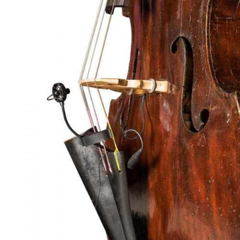 Microfone para Contrabaixo. Aceita pressão acústica até 140db, polaridade cardioide, compatíveis com os emissores Prodipe, haste flexível para fácil montagem e ajuste, isolamento para as vibrações do instrumento, com adaptador de miniXLR para XLR, para ligação directa à mesa. Necessita phantom power.