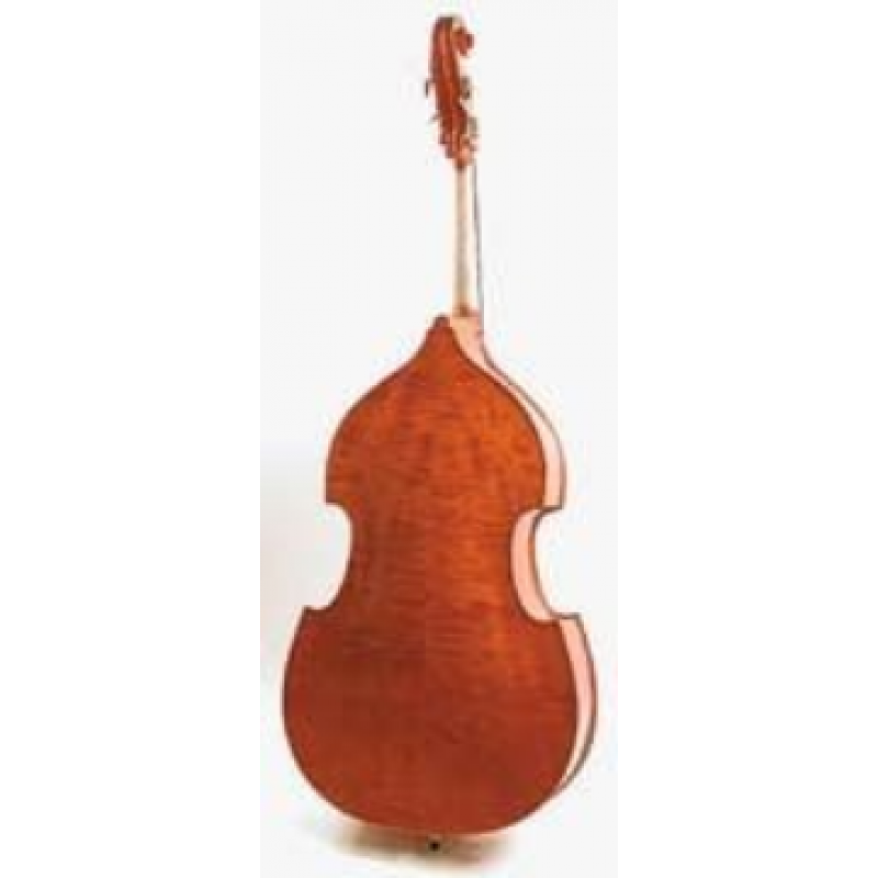 Contrabaixo 3/4 com tampo em Abeto 1ª escolha, fundo em Arce raiado, guarnição em ébano, construído e envernizado à mão, calibrado.