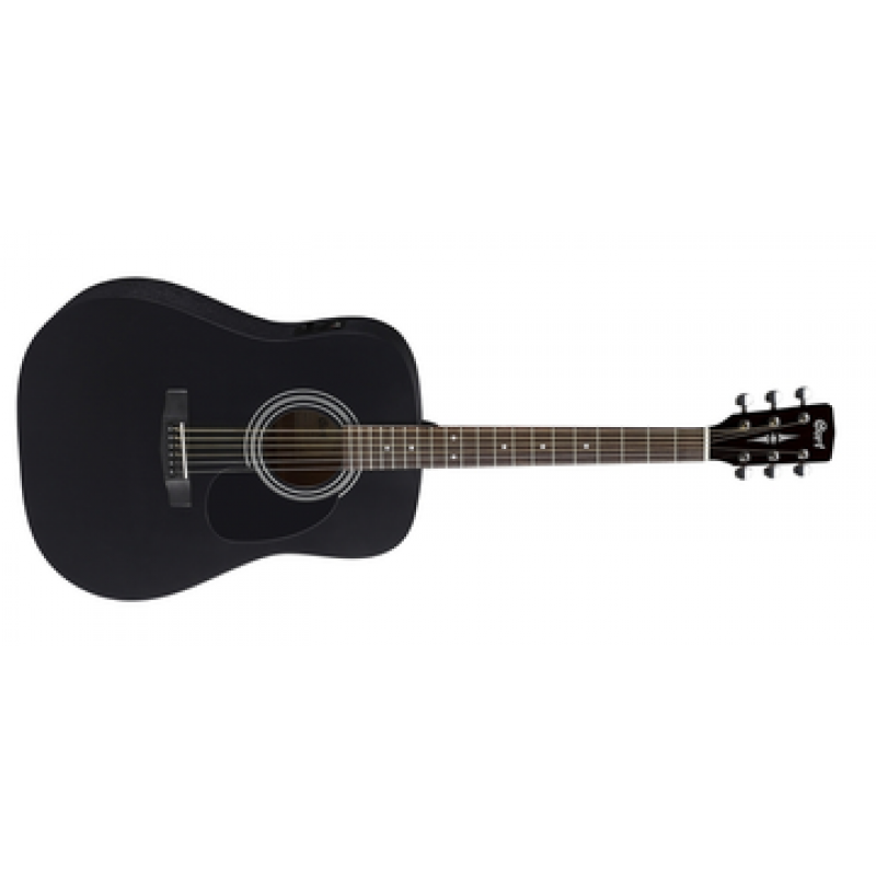 Guitarra acústica eletrificada tipo Dreadnought. Tampa de abeto. Aros, fundo e braço de mogno. Diapasão e ponte de pau rosa. 20 trastes. Pastilhas cerâmicas. Prévio Cort CE304T Acabamento Black Cetim.