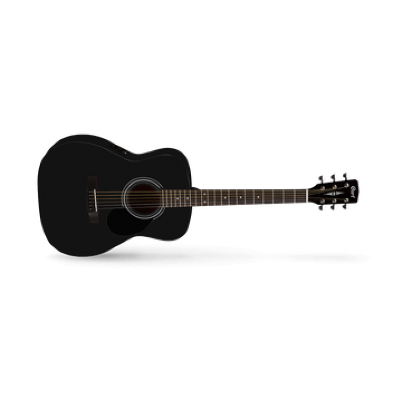 Guitarra acústica electrificada de tipo Folk. Mástil de caoba con diapasón de Merbau. Cuerpo con aros y fondo de caoba, tapa laminada de abeto. Previo Cort CE304T. Acabado en negro mate