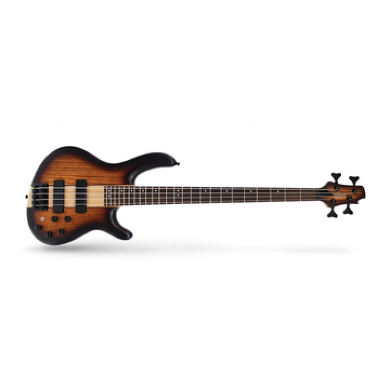 Baixo de 4 cordas, desenho moderno com duplo cutaway. Corpo de mogno. Braço bolt-on de bordo canadense. Diapasão de pau rosa. 24 trastes. Escala 34'. Cravelhame Diecasting. Pastilhas Bartolini MK-1 Pickups. Eletrônica Mark Bass MB-1 EQ. Ponte EB12. Ferragens pretos. Cor Open pore tabacco burst