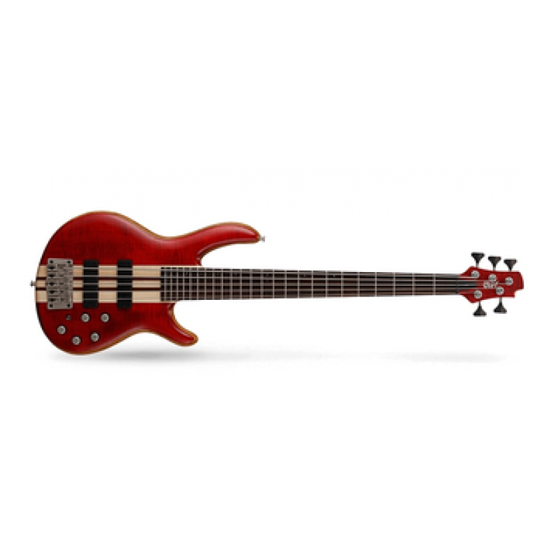 Baixo de 5 cordas, desenho moderno com duplo cutaway. Corpo de mogno com tampa de bordo. Braço neck-thru de 5 peças de bordo e wenge. Diapasão de pau rosa. 24 trastes. Escala 34'. Cravelhame Hipshot Ultralight. Pastilhas Bartolini MK-1 Pickups. Ponte Hipshot Trans Tone. Ferragens cor platino. Cor Open pore black cherry.
