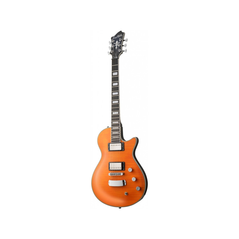'Ultra Max - Milky Mandarin - Mahogany Body, Set Mahogany Neck, Long Throw T-O-M, Hagstrom Sustain Blocks, 2 x Custom 60 Alnico 5, 2 x Vol RC-Circuit, 1 x Tone (Push/Pull - Coil Split), 25.5'' Scale Length, H-Expander Truss Rod, 15:1 Hagstrom Tuners, Resinator Fretboard'