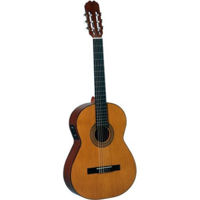 Guitarra Clássica Electrificada, Tampo em pinho Oregon, corpo em sapeli com rebordo escuro no tampo e fundo, carrilhão niquelado, com equalizador Fishman Classic III.