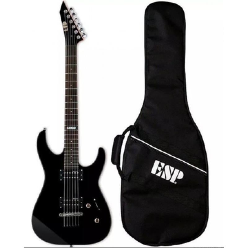 Guitarra formato Single Cut, corpo de Tilo, braço em Ácer aparafusado com perfil fino em U, escala em Rosewood de 25,5? com 24 trastes XJ, carrilhões LTD, ponte TOM, pickups ESP LH-100 , hardware cromado, acabamento BLK, com saco.