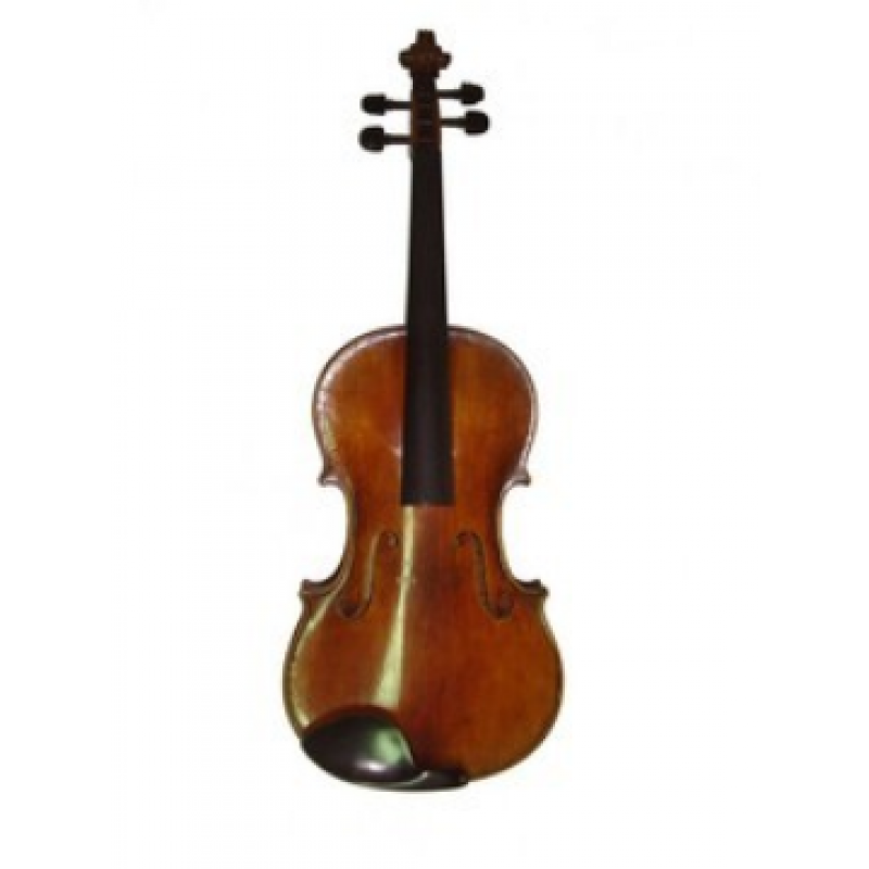 Viola de arco com tampo em abeto, tampo traseiro e laterais em maple Europeu. Verniz de fórmula tradicional. Acabamento antigo. Cordas Dominant.