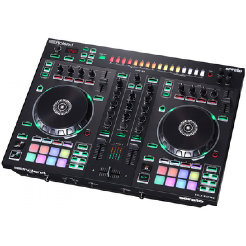 Controlador DJ de 2 canais para o Serato Intro com 4 decks, pratos grandes com latência mínima, inclui Kits de baterias Roland, cada kit com 8 sons com processamento em realtime, sequenciador 16 pistas, pode funcionar como mesa de mistura independente, controlo de volume do sampler independente, Midi output para sincronização, input de micro com Gate, Reverb, HighPass e Echo FX, 8 pads configuráveis, software com integração iTunes, inclui Serato DJ e outras ferramentas Serato, saídas balanceadas XLR, saída booth, transformador incluído.