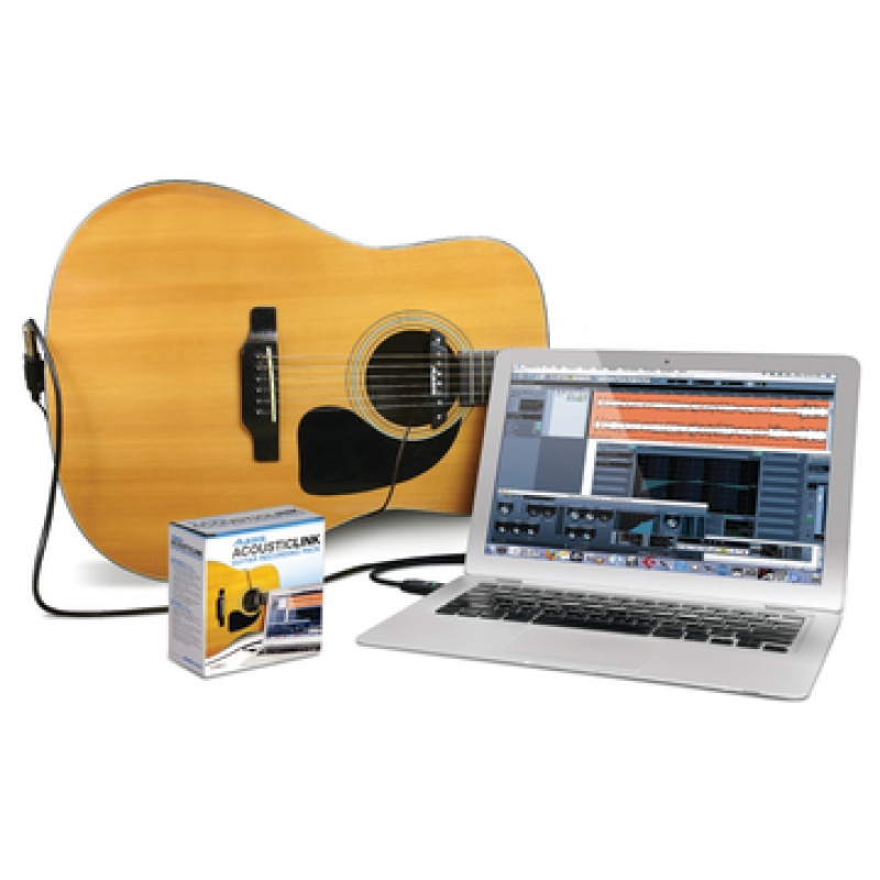 Pack completo de gravação de guitarra em computador (Mac ou PC). Pickup para guitarra acústica (cordas de aço) com ficha jack fêmea. Cabo GuitarLink (jack-USB) para ligar