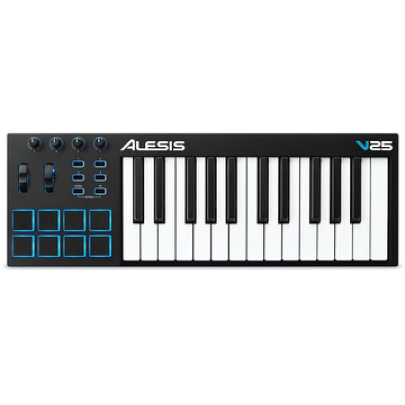Teclado/Controlador USB/Midi de 25 teclas (tamanho normal ). 4 botões rotativos e 4 botões configuráveis. 8 Trigger pads iluminados. Para Mac ou PC. Alimentação através de USB. Software incluído: Ableton Live Lite e Xpand!2 by AIR Music Tech