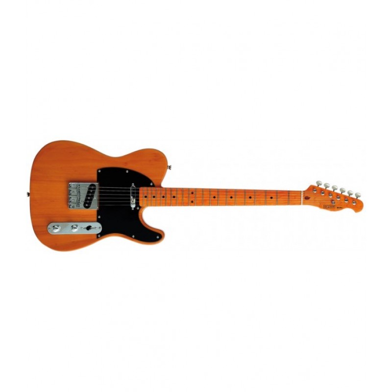 Guitarra eléctrica tipo Tele. Corpo sólido de tília. Mastro de bordo de 22 trastes. Diapasão de bordo. 2 pastilhas simples. Seletor de pastilhas de 3posições. 1 controle de volume, 1 controle de tono. Ponte vintage. Cravelhame selado Die-Cast. Acabamento brilhante vintage.