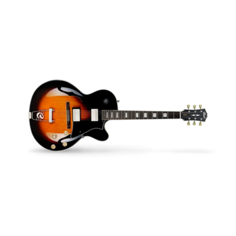 Guitarra eléctrica de meia caixa com cutaway. Tampa de Abeto. Aros e fundo de bordo. Braço set neck de bordo canadense. Diapasão de pau rosa. 20 trastes. Escala 24.75'. Cravelhame Vintage. Ponte e cordal T.O.M.. Pastilhas CLassicRocker II. Configuração H-H. Cromados Niquelados. Acabamento Tabacco Burst. Capa incluída.