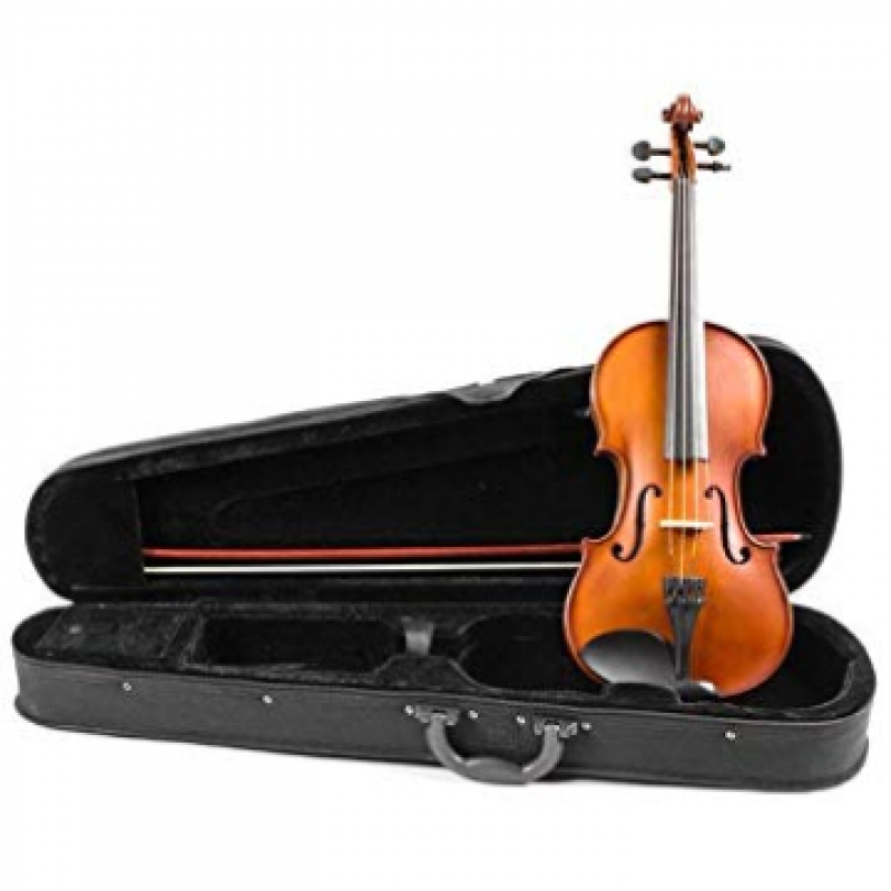 Violino de estudo, tampo maciço em Spruce, fundo e laterais em Maple maciço, inclui estojo, arco e resina.
